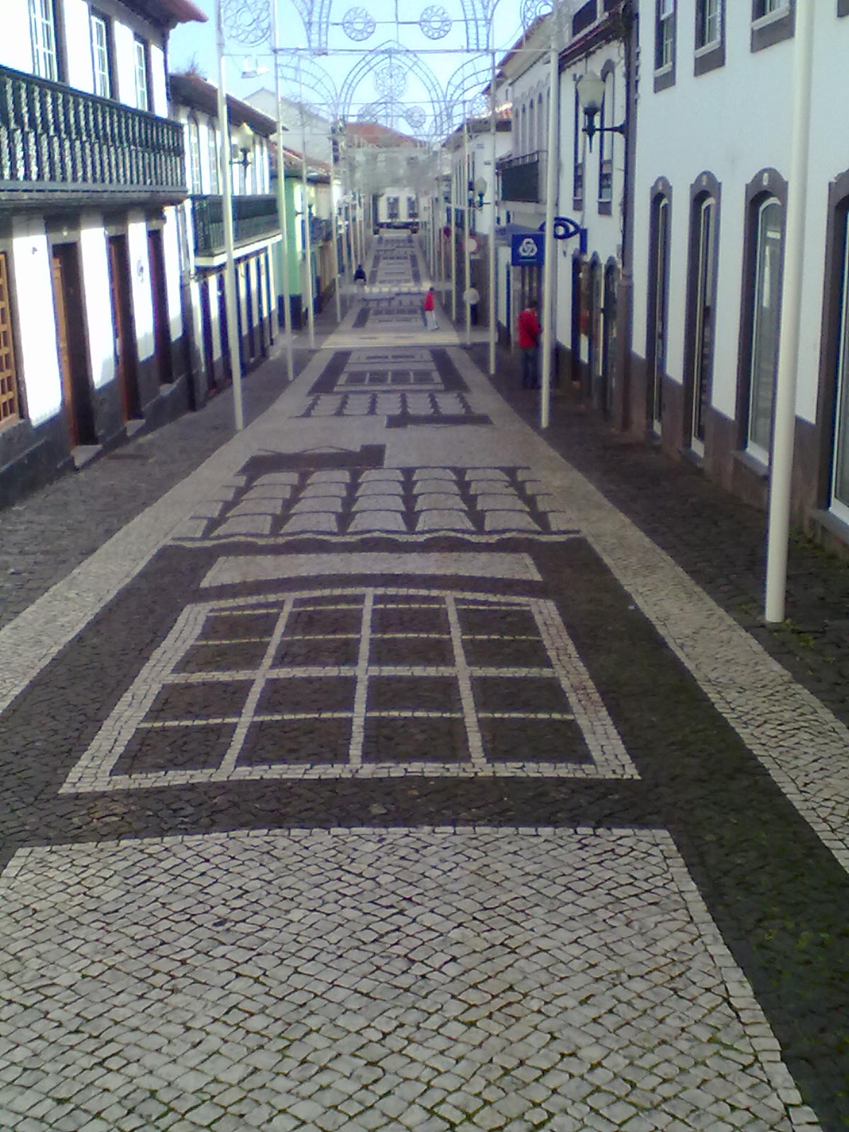 Pave bicolore a Praia da Vitoria. È un esempio della famosa “calzada portuguesa” il tipico modo di pavimentare le strade ed i marciapiedi. Stile che fu poi ripreso anche in Brasile, sul celebre lungomare di Copacabana a Rio.
