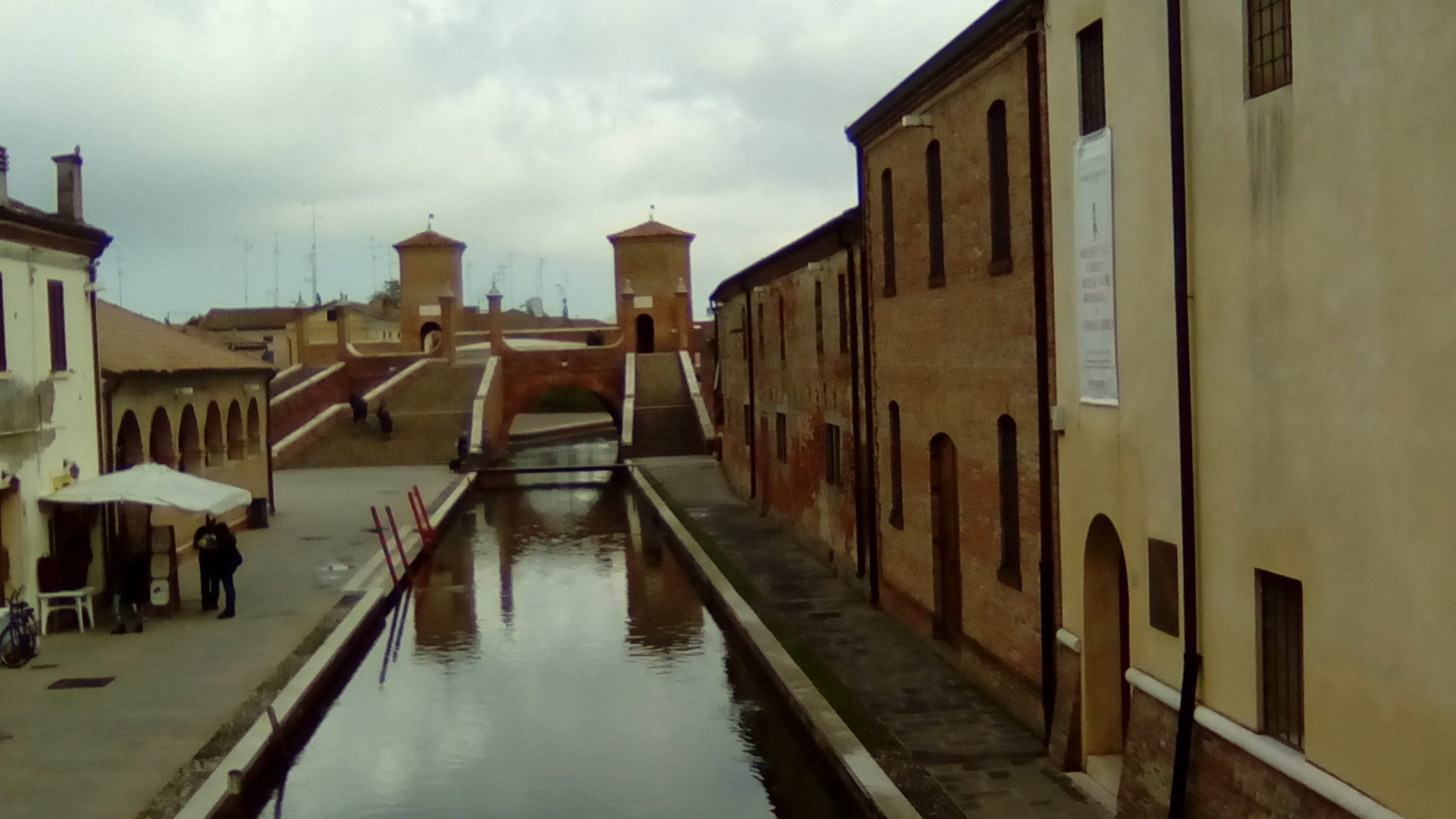 Una mezza giornata a Comacchio è cosa gradevolissima e proficua per l’animo, la mente ed il gusto. Il centro storico è piccolo, raccolto, calmo e sorprendente. E’ fatto di canali e ponti, come a Venezia e a Chioggia, ma è tutto più ampio, tranquillo, meno frequentato. Sembra un pò disabitato, quasi abbandonato. E’ tutto raccolto in poche centinaia di metri, che ho percorso più e più volte, incantato dall’atmosfera.